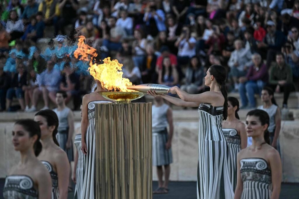 Os organizadores franceses dos Jogos Olímpicos de Paris 2024 receberam nesta sexta-feira (26) da Grécia a chama olímpica em uma cerimônia em Atenas, antes de um revezamento de 68 dias da tocha que terminará com a cerimônia de abertura em 26 de julho. A chama chegou ao estádio Panatenaico de Atenas, local dos primeiros Jogos […]